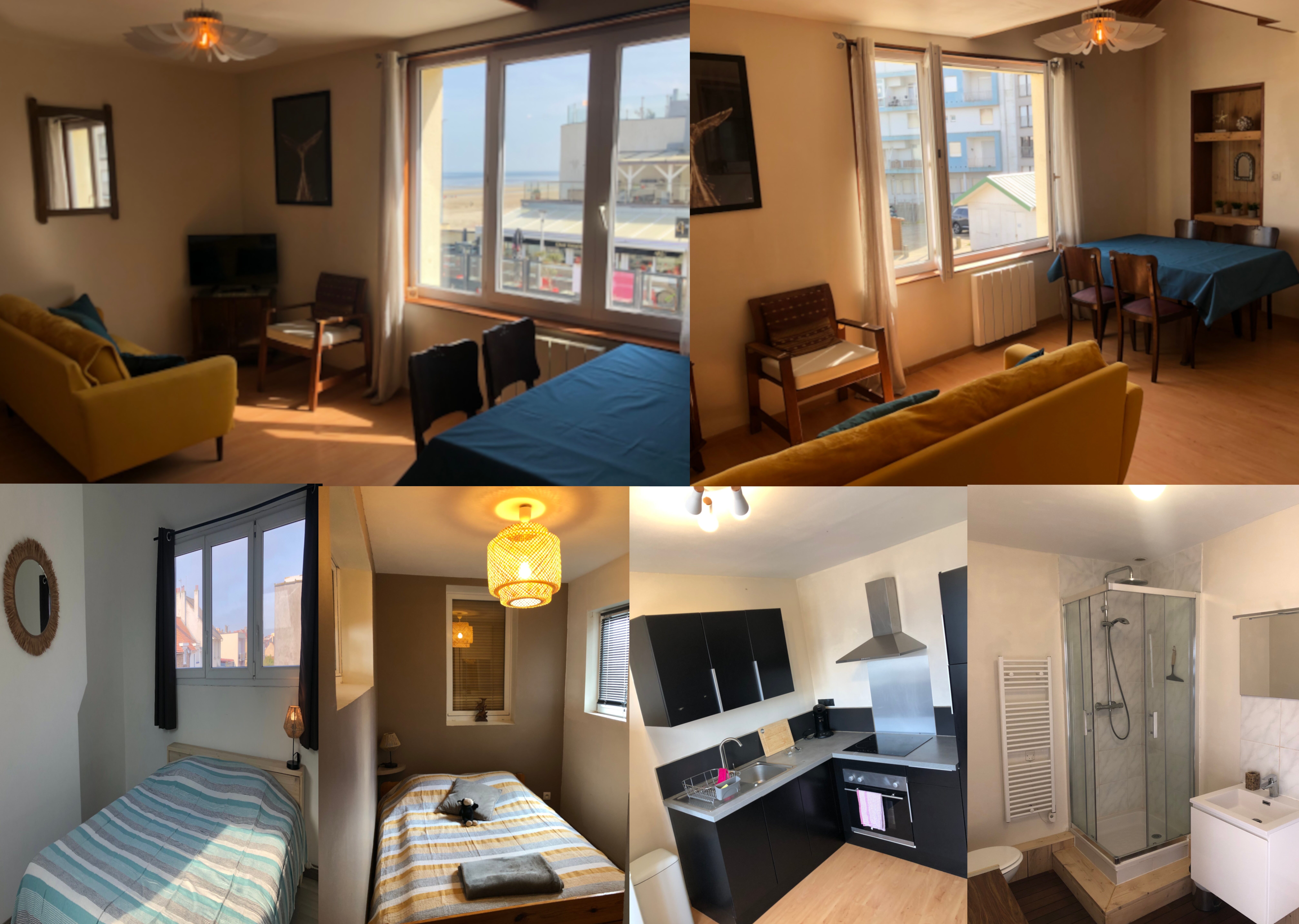 Appartement spacieux d environ 65 m2, vue sur la mer de côté avec accès direct à la plage, comprenant un séjour, deux chambres dont une en mezzanine, une cuisine et une salle de bain-wc.